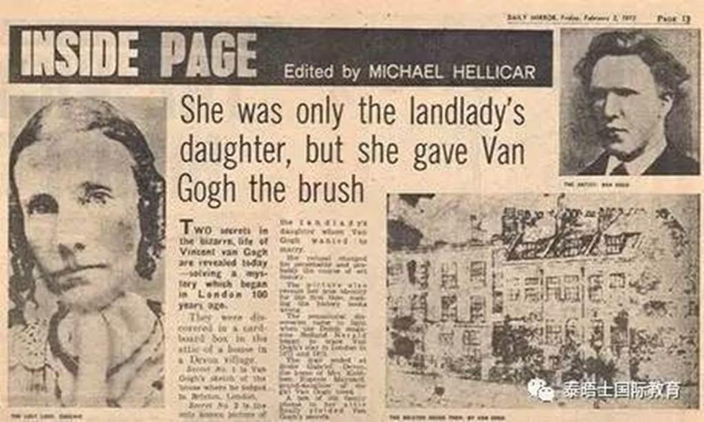 年轻的梵高爱上了房东19岁的女儿尤金娜.卢瓦耶。她对梵高照顾有加,梵高苦苦追求,并向姑娘求婚,但是姑娘心有所属且婚约在身。梵高备受打击,悲痛欲绝的他决定放弃一切离开伦敦。遭受初恋失败打击也是梵高后来郁郁寡欢,患上精神疾病的一个重要原因。