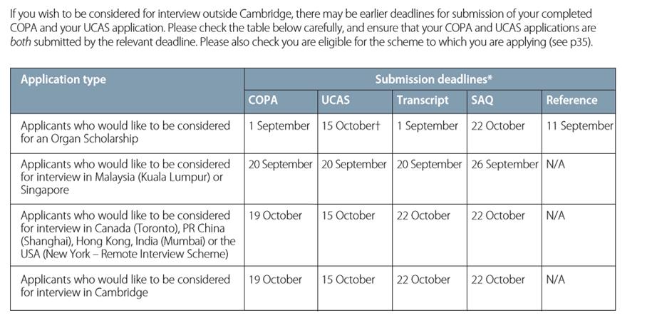 剑桥大学的申请截止时间表
