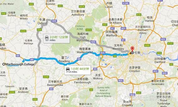 马尔伯勒学校位于威尔特郡,大约离伦敦西侧80英里。从威尔特郡乘火车去巴斯14分钟,去伦敦大约70分钟。