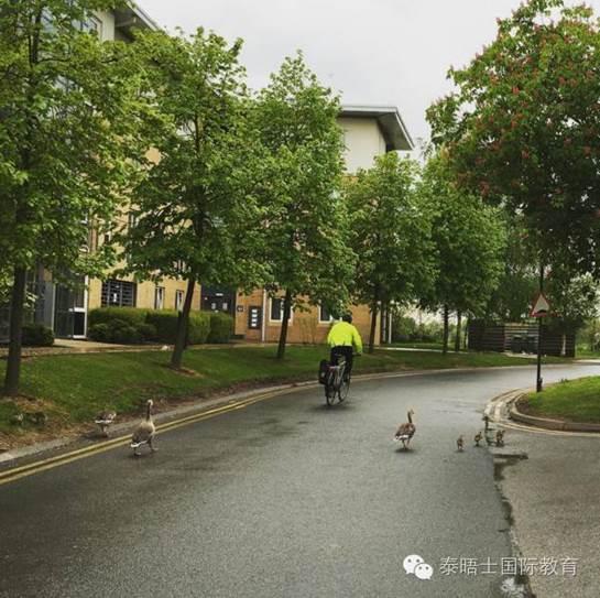 大学内鸭子密度是英国大学里最高的,约克大学鸭子的密度为13.5/rood(1 rood=1011㎡),鸭子/学生:0.07,简直就是走两步看见一只鸭子,再走两步又看见一只的即视感。有学生表示清晨上课的第一份礼物就是鸭婶儿们给的,你不会想知道细节的。优美的学习环境和雄厚的学术实力,使约克大学成为一个能让梦想起飞的地方。