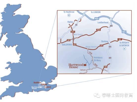 赫特伍得豪斯是一所住宿制A-Level学校,为男女学生提供进入大学前两年的衔接课程。校园位于著名的伦敦西南35英里的萨里郡萨里山顶,东西两边环绕着英国最美丽富庶的Guildford镇和Dorking镇。校园周围森林环绕却交通方便,距英国最主要的两个机场Heathrow 和 Gatwick 仅需45分钟车程。