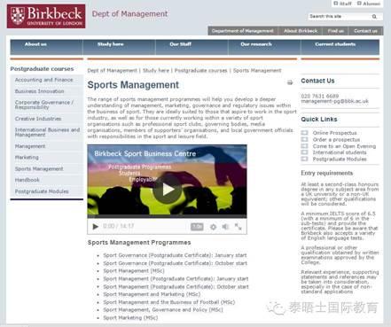 在英国,提供体育管理专业的大学并不多。而在伦敦,更是只有伯贝克这一所大学开设了体育管理以及相关的专业。通常伯贝克体育管理项目们的课程都伴有大量的“研讨会”(Seminar),授课老师们请来英国体育大牛组织(如体育赛事集团、体育管理机构、体育商业公司等)的极具经验的人物们,来跟我们分享他们在体育领域的知识和见闻,含金量非常高。这也是得益于伯贝克体育商业研究中心在英国乃至欧洲体育领域的地位。